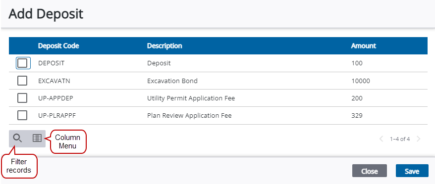 The following fields are found in the Deposit, Add Deposit, and Edit Deposit panels.