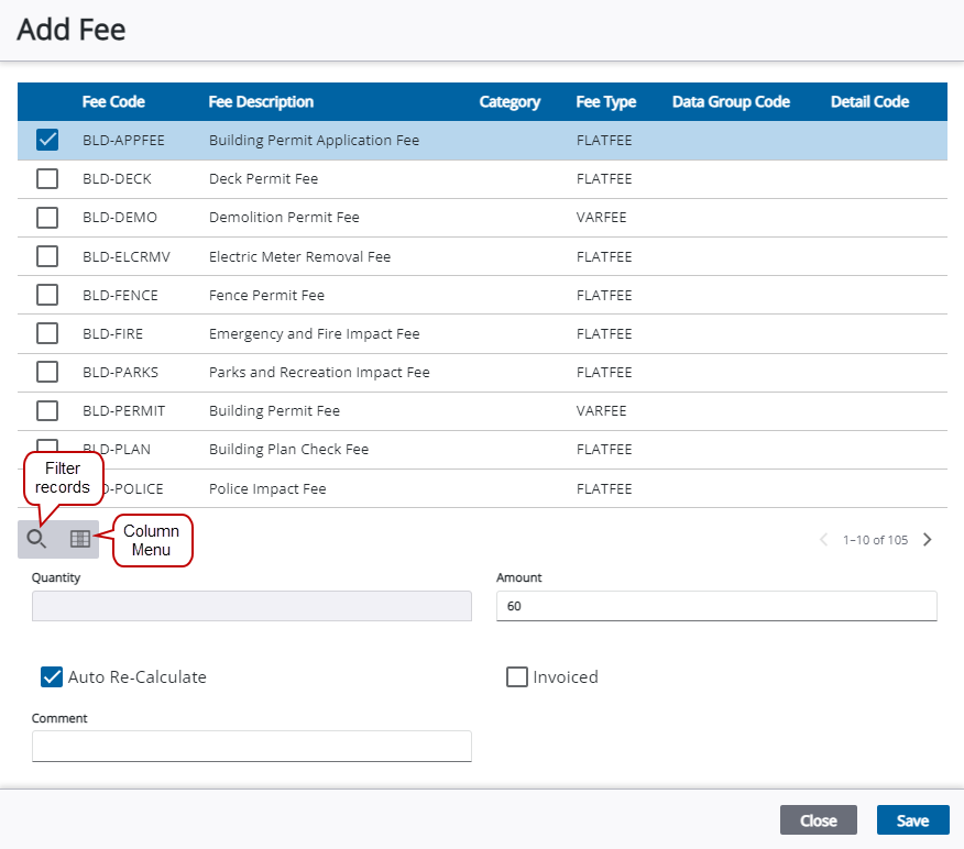 The following fields are found in the Add Fee and Edit Fee panels.