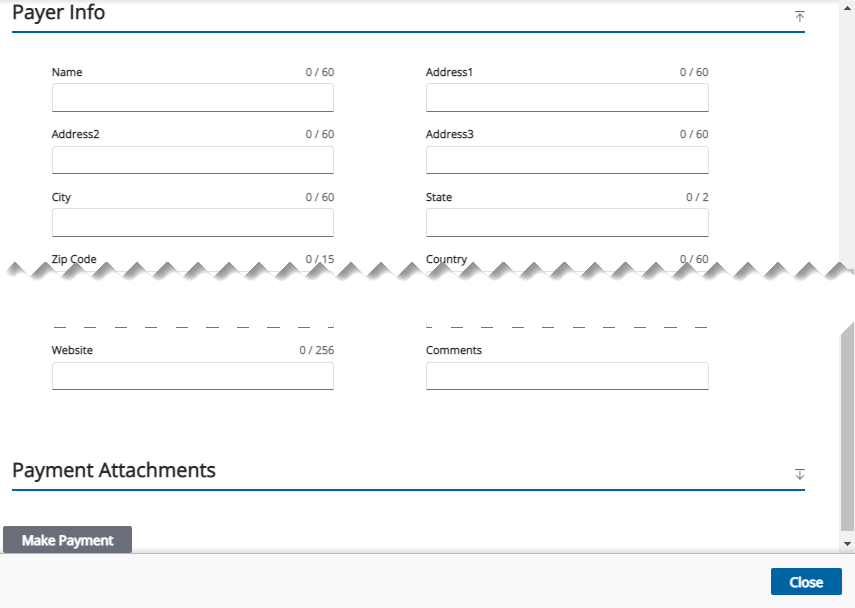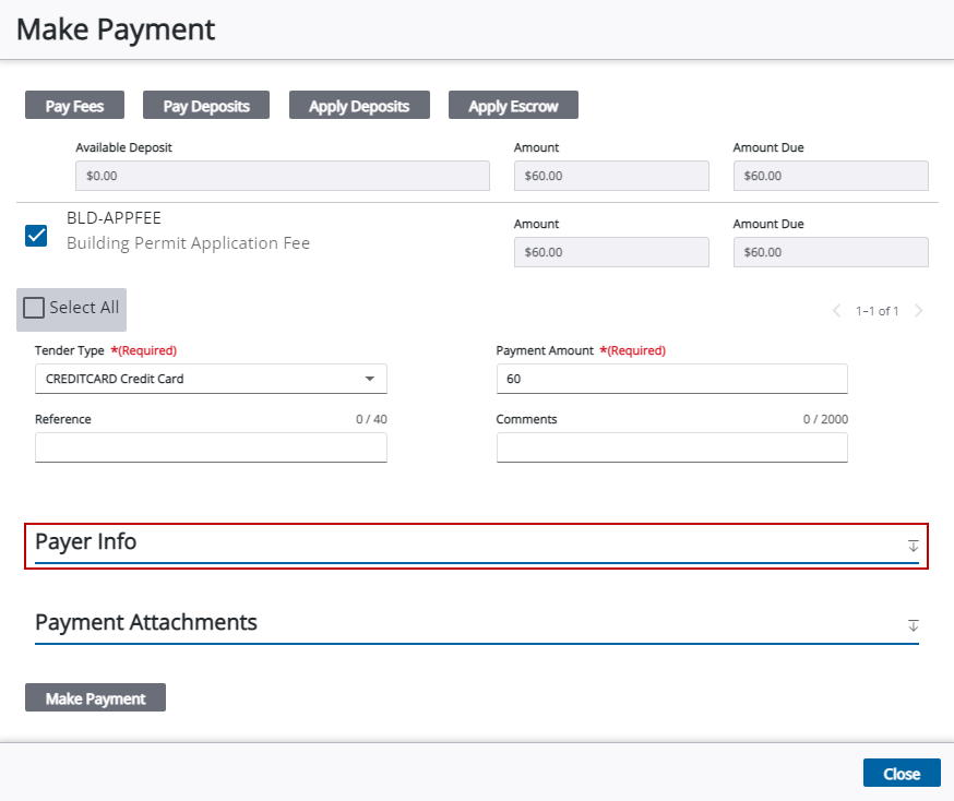 1. Tap Make Payment to apply the payer information to the selected fees or deposits. A payment must be made on a fee to activate the Make Payment option.