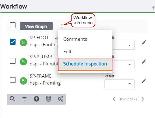 1. Tap the Workflow sub menu and tap Schedule Inspection.