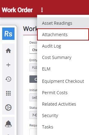 The Attachments panel allows you to add, view, edit, or remove attachments associated to the work order.