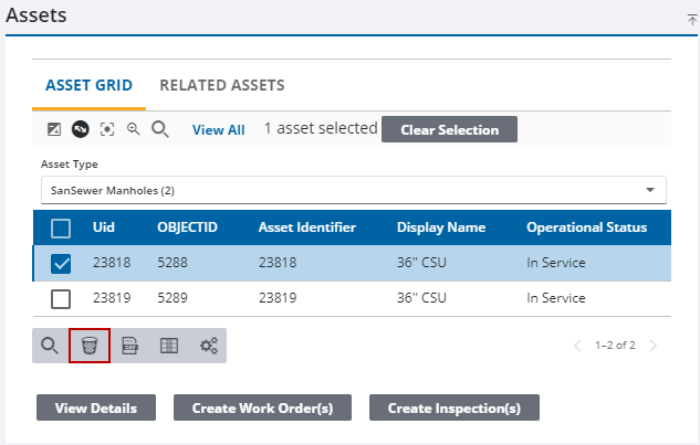 When assets are removed from the Assets panel, they are automatically removed from the selection on the map.
