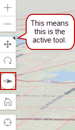 A small triangle in the top-right corner of the tool shows which tool (pan or rotate) is the active tool.