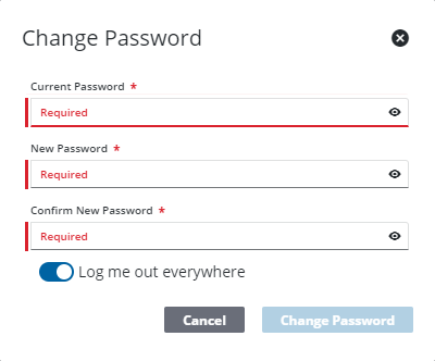 The Change Password panel opens. If any password requirements have been set by the administrator, the user sees all of the requirements they must meet while creating a password. You cannot tap Change Password until the password meets the requirements set by the administrator. See Configure Global Preferences in the Admin 3.2 Guide for more information.