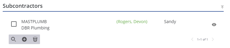 The subcontractor is added to the Subcontractors section. From here you can search, add, and remove subcontractors as well as view existing subcontractors.