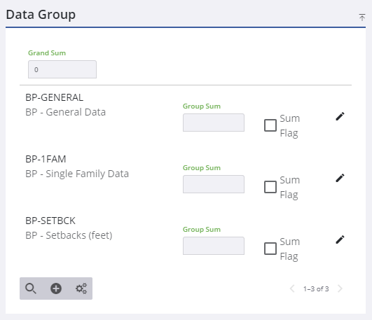 The Data Group panel and page are made up of custom fields configured by the administrator to request different information for every case type. Case data is specific information provided by the builder, owner, etc., about a case that can be used to calculate fees. Data groups are a way to further organize case data. From here you may add, edit, or view data groups as needed.