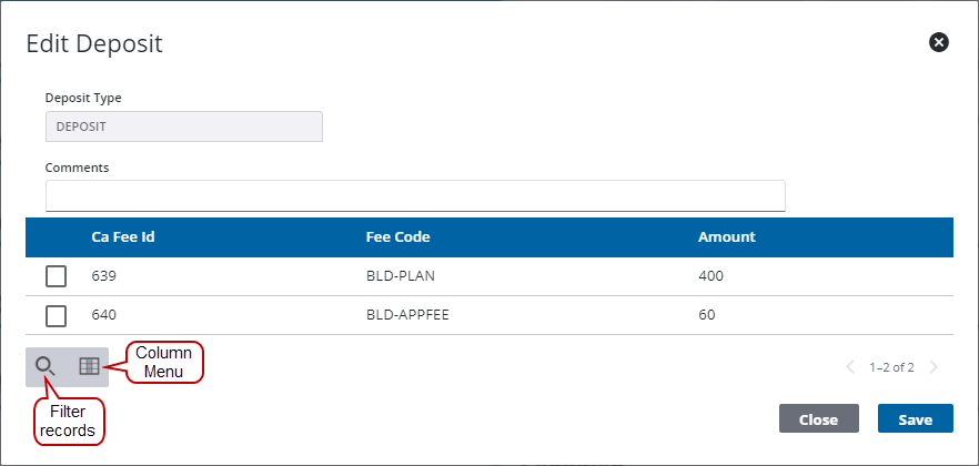 The following fields are found in the Deposit, Add Deposit, and Edit Deposit panels.