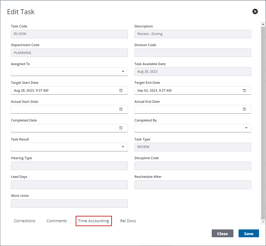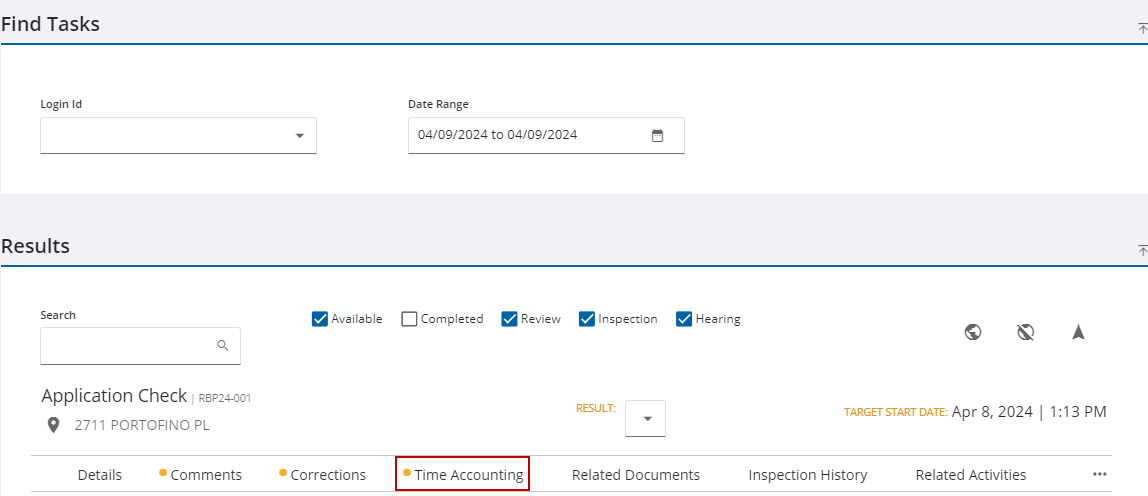 Use Time Accounting on a Task