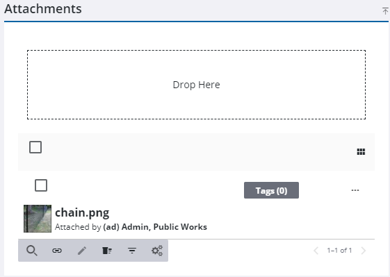 The Attachments panel allows you to add, view, edit, or remove attachments associated to the service request.