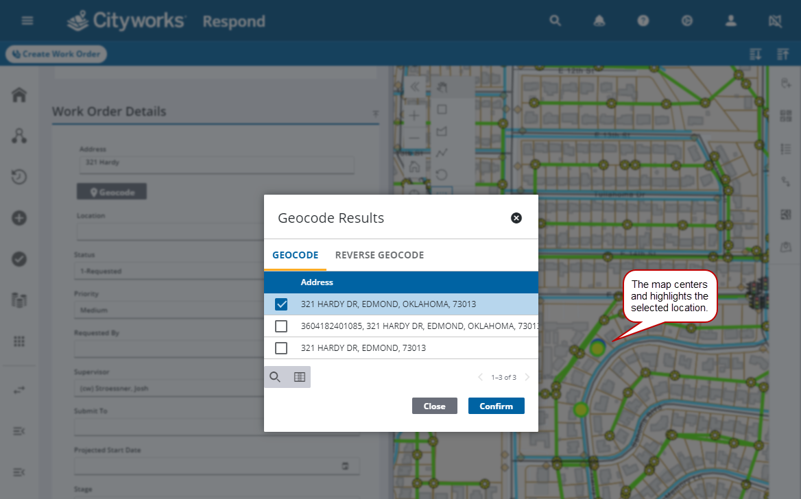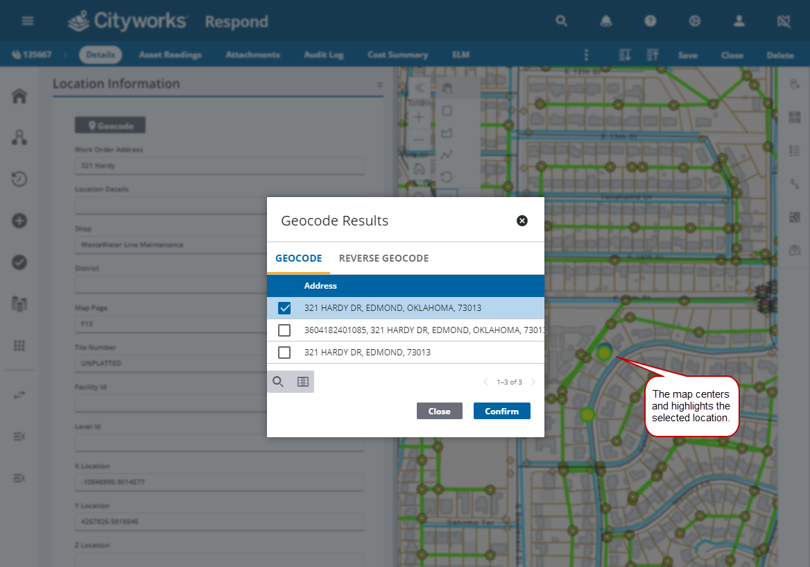 A geocoded work order includes the X and Y coordinates for the address. Complete one of the following: