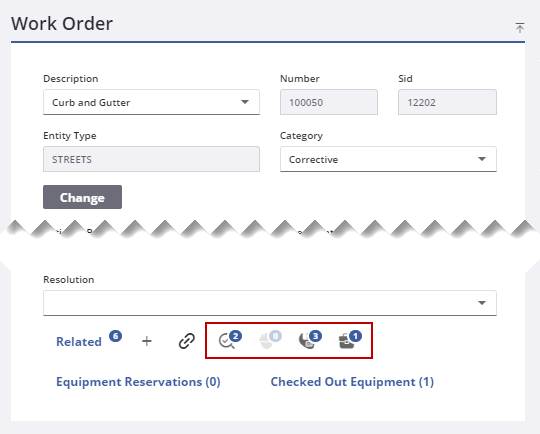 You can open a related work activity from the main panel of the work activity or from the Related Activities page.