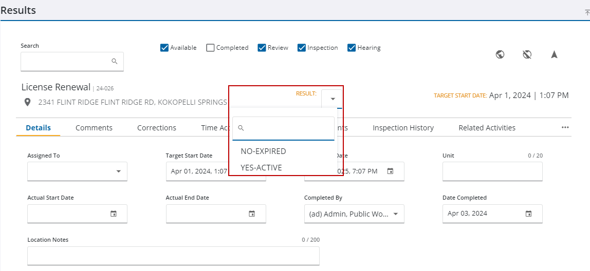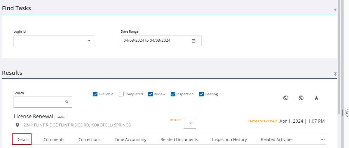 • Checklist or correction items must be completed in order to complete a task. See Complete Corrections for more information.