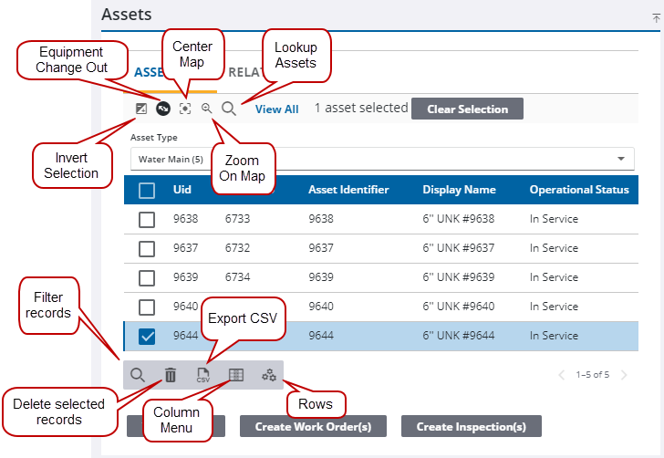The following fields are found on the Assets and Work Activities panels on the Asset Details page.
