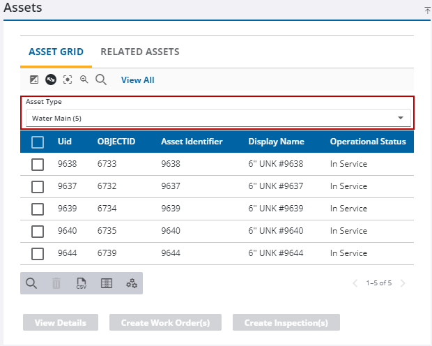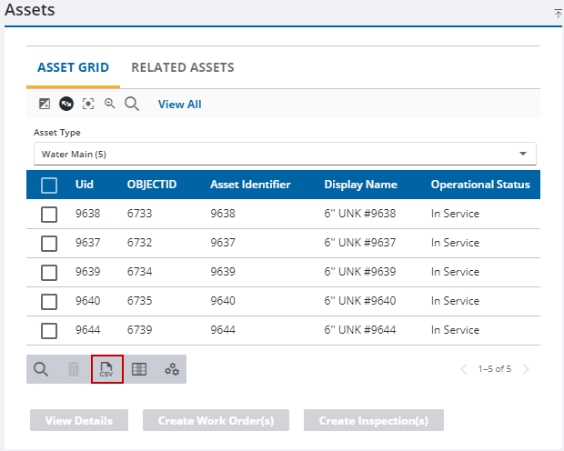 Export assets selected from the map and displayed on the Assets panel to a .csv file.