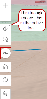 A small triangle in the top-right corner of the tool shows which tool (pan or rotate) is the active tool.
