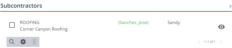 The subcontractor is added to the Subcontractors section. From here you can search, add, and remove subcontractors as well as view existing subcontractors.