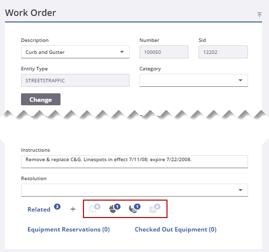 You can open a related work activity from the main panel of the work activity or from the Related Activities page.