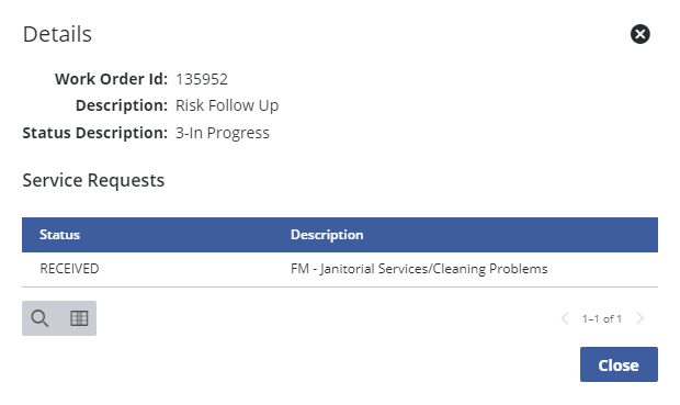 Some widgets, such as a table widget, allow you to view related information (i.e., child data), like showing related work activities or work order tasks for a work order.