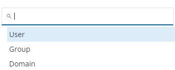 1. Tap the drop-down list to select whether permissions for the dashboard are given to a specific User, Group, or the entire Domain.