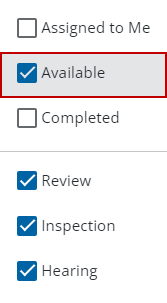 You can filter tasks by the type of task, if it's available or completed, or which tasks are assigned to the user who is currently logged in. Tasks can be filtered from the Workflow panel on the case summary page or from the Workflow page.