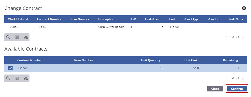 1. On the Change Contract panel, select the contract from the Available Contracts section.