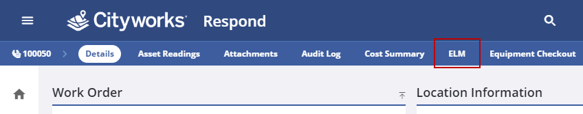 Open the ELM page from a work activity allows you to quickly add equipment, labor, material, and line items to the work activity.