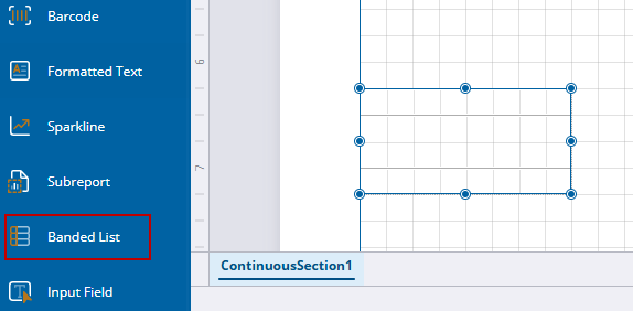 2. Drag containers or other report controls into the Details section, the middle section, of the banded list.