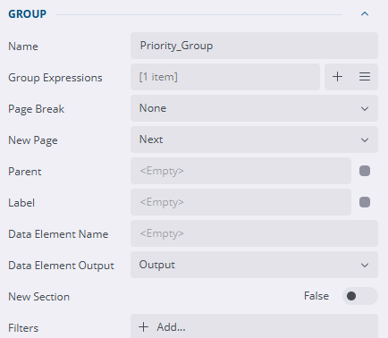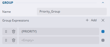 - A Sort Expression can be added to sort the group by ascending or descending as well. For example, priority descending.
