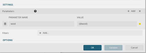 - Double-click the parameter name you created, for example WOID.