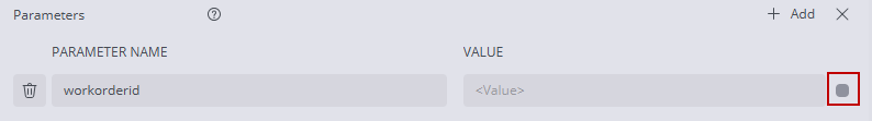 - Change the Parameter Name to your parameter name, for example workorderid.