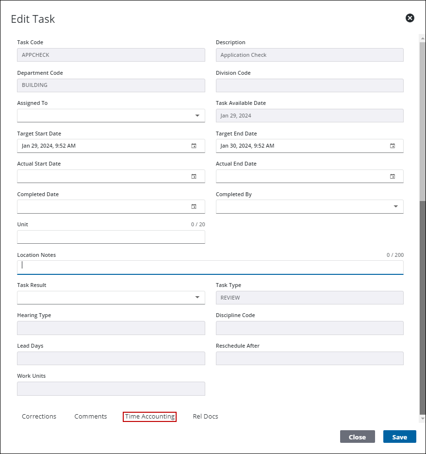 Time accounting allows you to track the time spent on specific tasks. You can add, edit, remove, or view time accounting information on a task in a case's workflow. Complete one of the following: