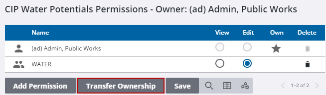 NOTE: If the person you transfer ownership to is not in the permissions panel, they are added when ownership is transferred to them.