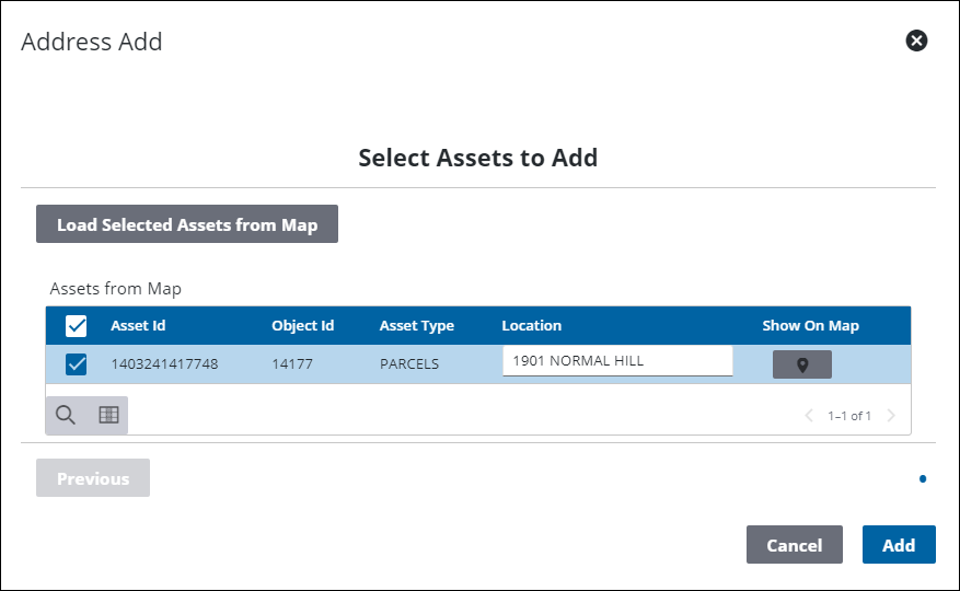 NOTE: Any assets selected on the map appear in the Assets From Map table.