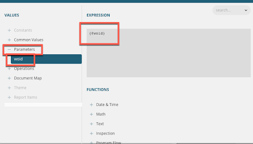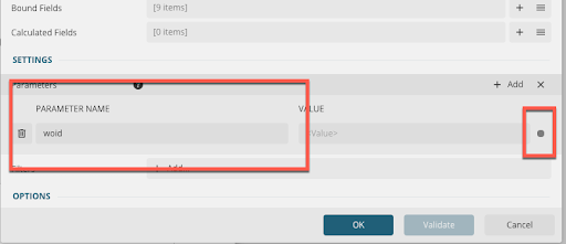 - Double-click the parameter name you created, for example WOID.