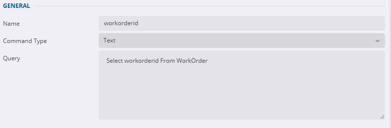 - In the General section, enter a name for example, workorderid.