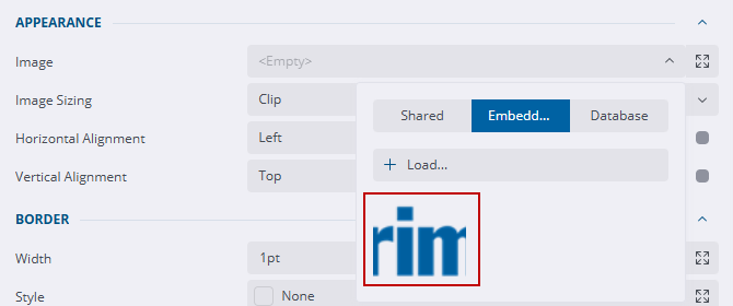 - Select Embedded from the Image field drop-down list.