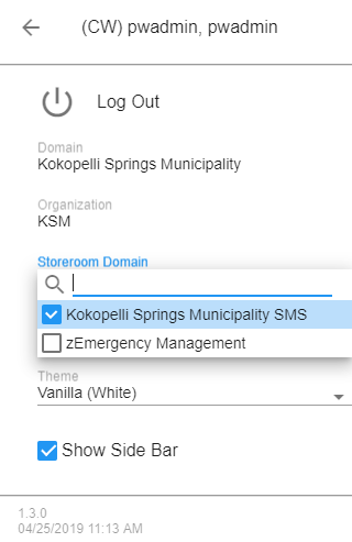 If your site has multiple Storeroom domains configured, you can navigate between them.