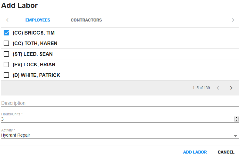 - Select employee(s) on the Employees tab or contractor(s) on the Contractors tab.