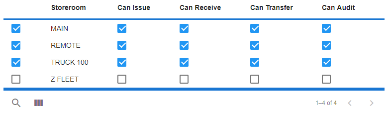 NOTE: If a user has Can Issue rights, Can Receive rights should also be given so that unused material can be received back into the storeroom. Any user has the rights to perform a requisition as it is merely a request for material and doesn't affect the inventory.