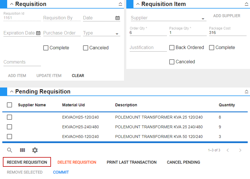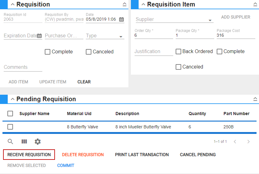 To receive a requisition, either create a requisition, perform a requisition search, or search for a requisition on the Receive page.