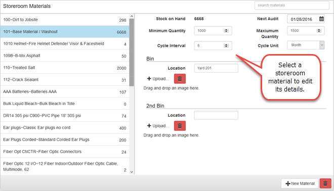 You can add material to individual storerooms to keep track of where your material is located.