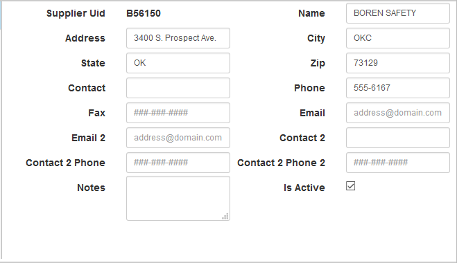 For an explanation of the fields found on this page, see Suppliers Fields.