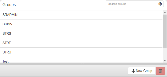 The Groups panel lists all of the existing groups. You can filter this list by typing the first few letters of the groups in the search box in the top-right corner of the panel.