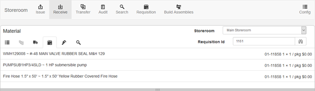 - Click Requisition on the Storeroom toolbar.