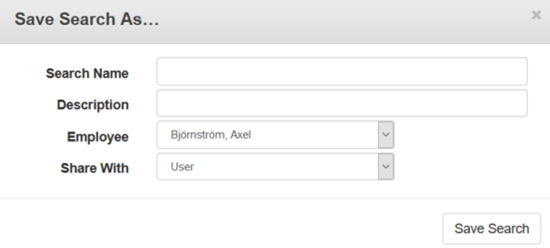 - In the Share With drop-down list, select either Domain, Group, or User to specify who will be able to view this saved search.