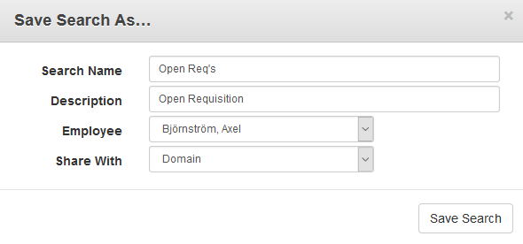 - Click Save Search on the Save Search As panel to apply the changes made.