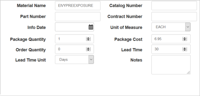The Supplier Material information should be entered as defined by the supplier to facilitate requisitioning materials.
