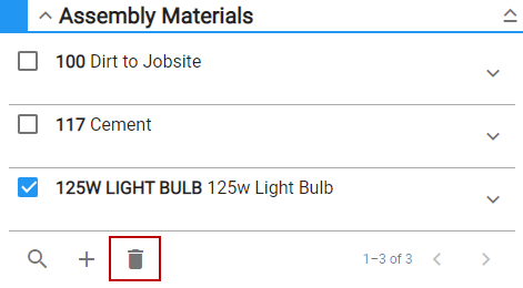 2. In the Assembly Materials panel, select the material and tap Delete selected records.