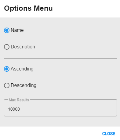 You can customize how the materials are sorted in the Material panel to more easily select materials from the list. Materials can be sorted by Name or Description, as well as in Ascending or Descending order.