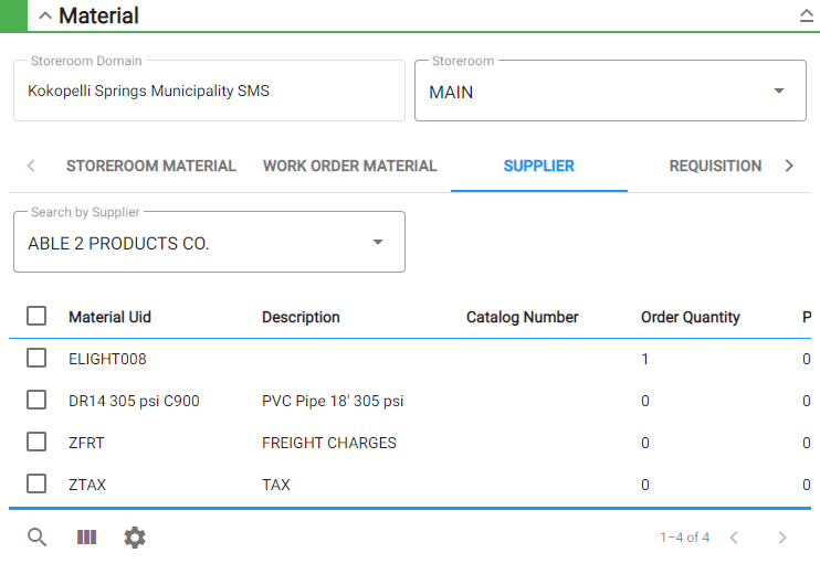 You can filter the material in the list by tapping Filter records and entering the first few letters or numbers of the material name, bin location, or part number.